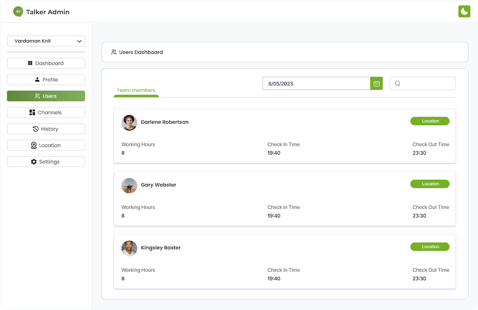 Talker.Network ensures that its interface is user-friendly across devices. The application’s desktop version maintains the same convenience as its mobile counterpart. Admin options are easily accessible on the left of the screen, allowing for efficient management of staff information. The attendance records, check-in/check-out logs, and real-time location tracking are all available at the click of a button, ensuring that team management is always at your fingertips.