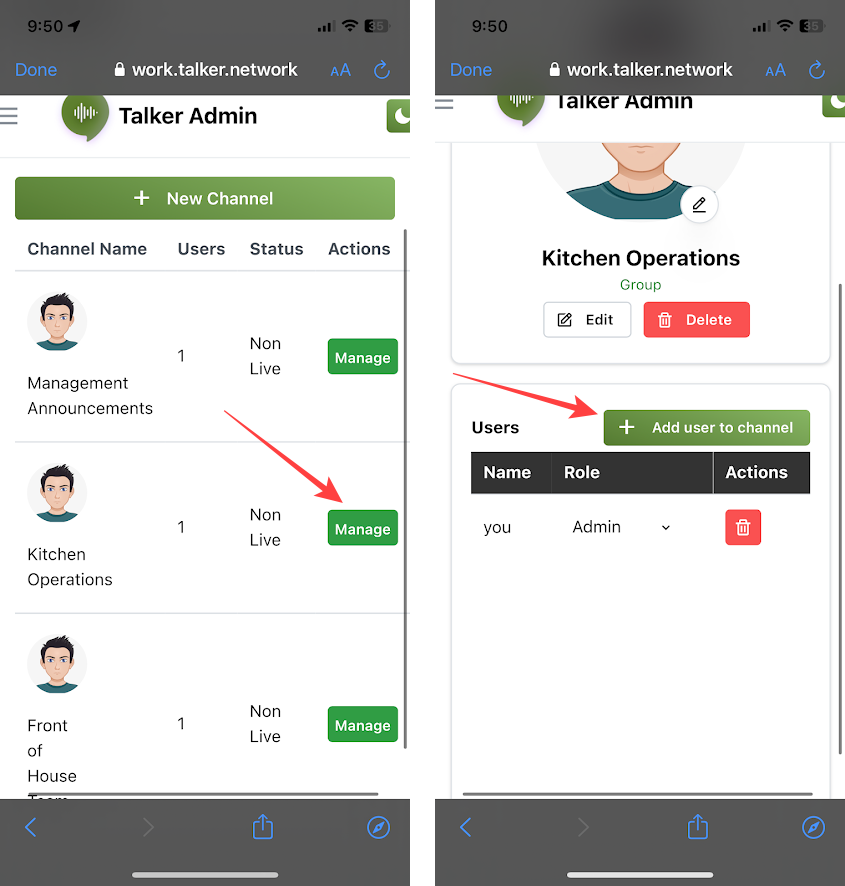 Step 6: Click on Done in the top, and click on Manage to add or remove users in the channel.